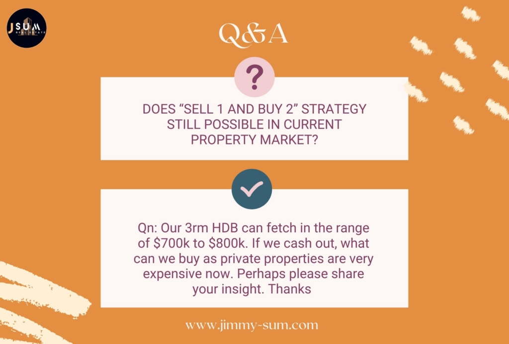 Qn 2: Our 3rm HDB can fetch in the range of $700K to $800K. If we cash out, what can we buy as private properties are very expensive now. Perhaps please share your insights. Thanks. Hi there, Thank you for writing in to us via WhatsApp. Before we proceed to share our opinions, we will need to make some assumptions. Below are the assumptions that we have made: Assumptions: • Both of you and your...