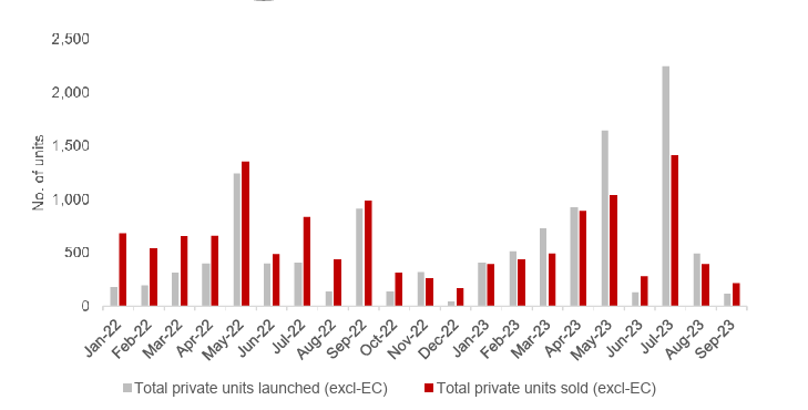 - Jan-Sep 2023: Fast forward to 2023, and the market experienced a significant boost in new unit launches, with a staggering 7,089 units introduced to prospective buyers. This represents more than double the number launched in 2022, signifying a remarkable increase in real estate activity.