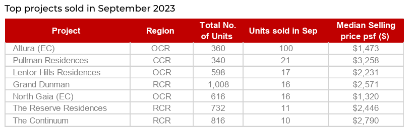 These projects represented the top-performing developments in terms of units sold in September 2023, contributing significantly to the real estate landscape.