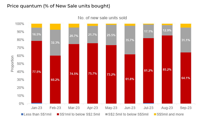 - In September 2023, new sale units priced between $1 to $2.5 million accounted for a substantial 64.1% of the total transactions.