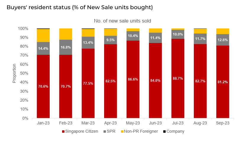 - The proportion of foreign buyers in the market saw a slight increase of 1.3% in September 2023. This uptick suggests that despite regulatory measures, foreign interest in Singapore’s real estate market remains a factor to be considered.